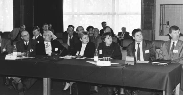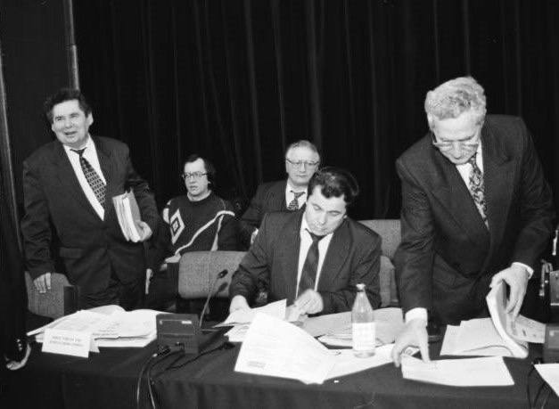 17.01.1992 г. 71-я сессия Ученого совета ОИЯИ. На первом плане слева направо: проф. Р. Бок (Германия) и директор ЛВТА проф. Р. Позе. Автор снимкa Юрий Туманов.