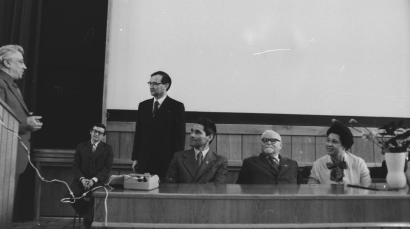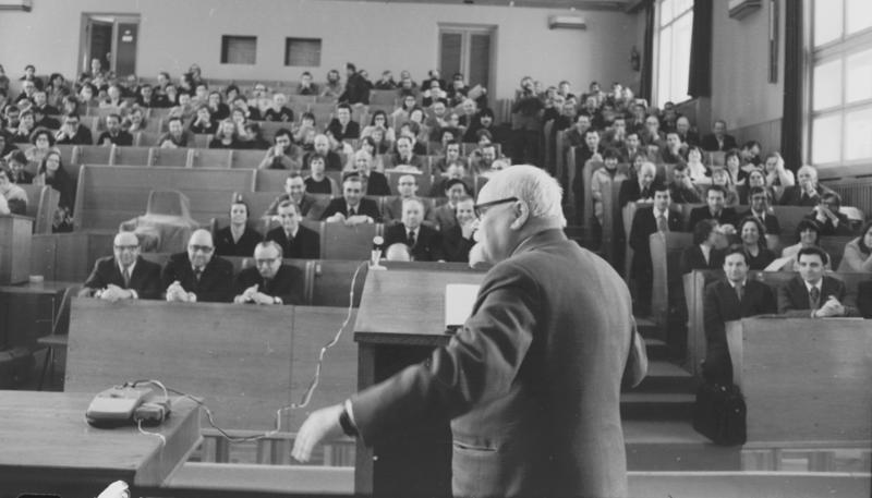 18 марта 1980 г. Академик А .Н. Тихонов делает доклад. Автор снимкa Юрий Туманов.