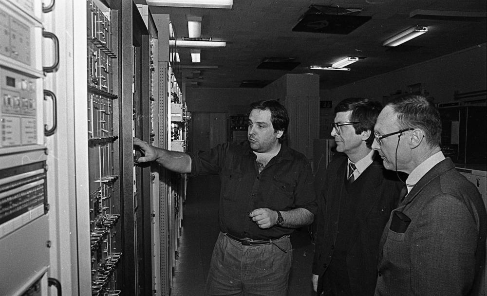 17 марта 1993 г. Директор ЛВТА проф. Р. Позе знакомится с системой космической связи в Центре космической связи "Дубна". Автор снимкa Юрий Туманов.