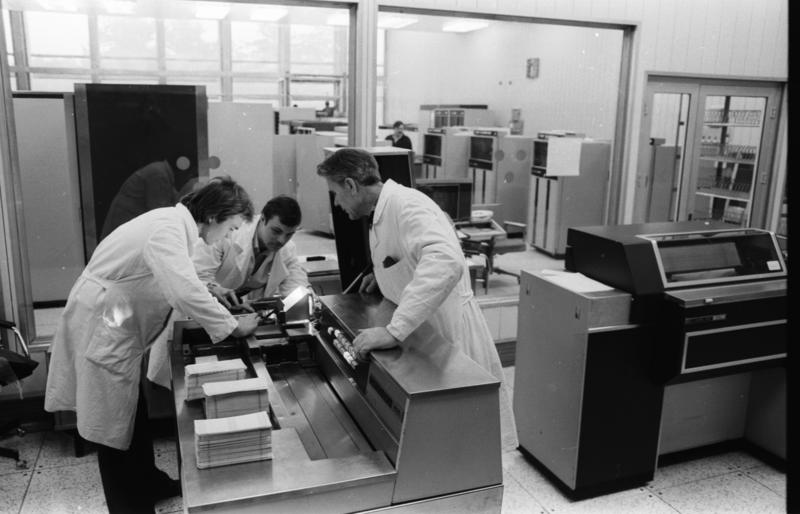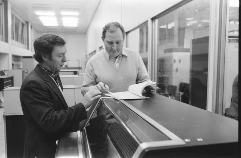 Каждый месяц мы открываем фотоархив ОИЯИ и делимся редкими снимками, которые позволяют нам почувствовать атмосферу жизни Лаборатории в те годы. Сегодня публикуем сентябрьские кадры: 22.09.1968 г. На снимке (слева направо): сотрудники ЛВТА В. Шугуров и В.П. Шкунденков. 22.09.1968 г. Одна из первый вычислительных машин МИНСК-22, на снимке: В. М. Кадыков, Э. В. Лейбман. 11.09.1976 г. Монтаж перископа спирального измерителя № 2. Слева направо: механик А.С. Буров и техник В.А. Буров. 14.09.1978 г. М.К. Баранчук ведет исследования прецизионного измерительного канала автомата АЭЛТ-2/160. 04.09.1990 г. На снимке И.А. Емелин перед монитором РС ХТ, системы выполнявшей функции связи БЭСМ-6 и ее настольного потомка, а также функции консоли МКБ-8601 — настольного образца БЭСМ-6, разработанного в ОИЯИ под руководством И.Н. Силина. 30.09.1985 г. Зал ЭВМ ЕС-1033, ЕС-1060, ЕС-1061. 30.09.1985 г. Главный системщик ЭВМ CDC-6500 Ю.И. Шелонцев. 30.09.1985 г. Отладка читающего устройства CDC-405. Слева направо: А. Парфенов, А.Б. Дятлов, В.И. Первушов. 30.09.1985 г. Слева направо: начальник группы ЭВМ CDC-6500 Л.А. Попов, бизнесмен из США Льюис, организатор перевоза ЭВМ CDC-6500 в корпус 134 Лаборатории. 30.09.1985 г. Идет тестирование. Слева направо: Льюис (США), М.С. Бикбулатова, Л.А. Попов, В.П. Миролюбов (спиной), представитель фирмы CDC Ричард Пост (на заднем плане).
