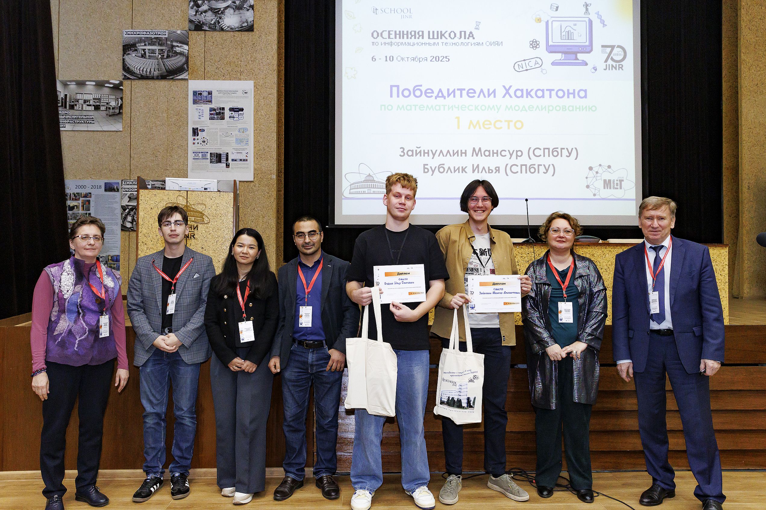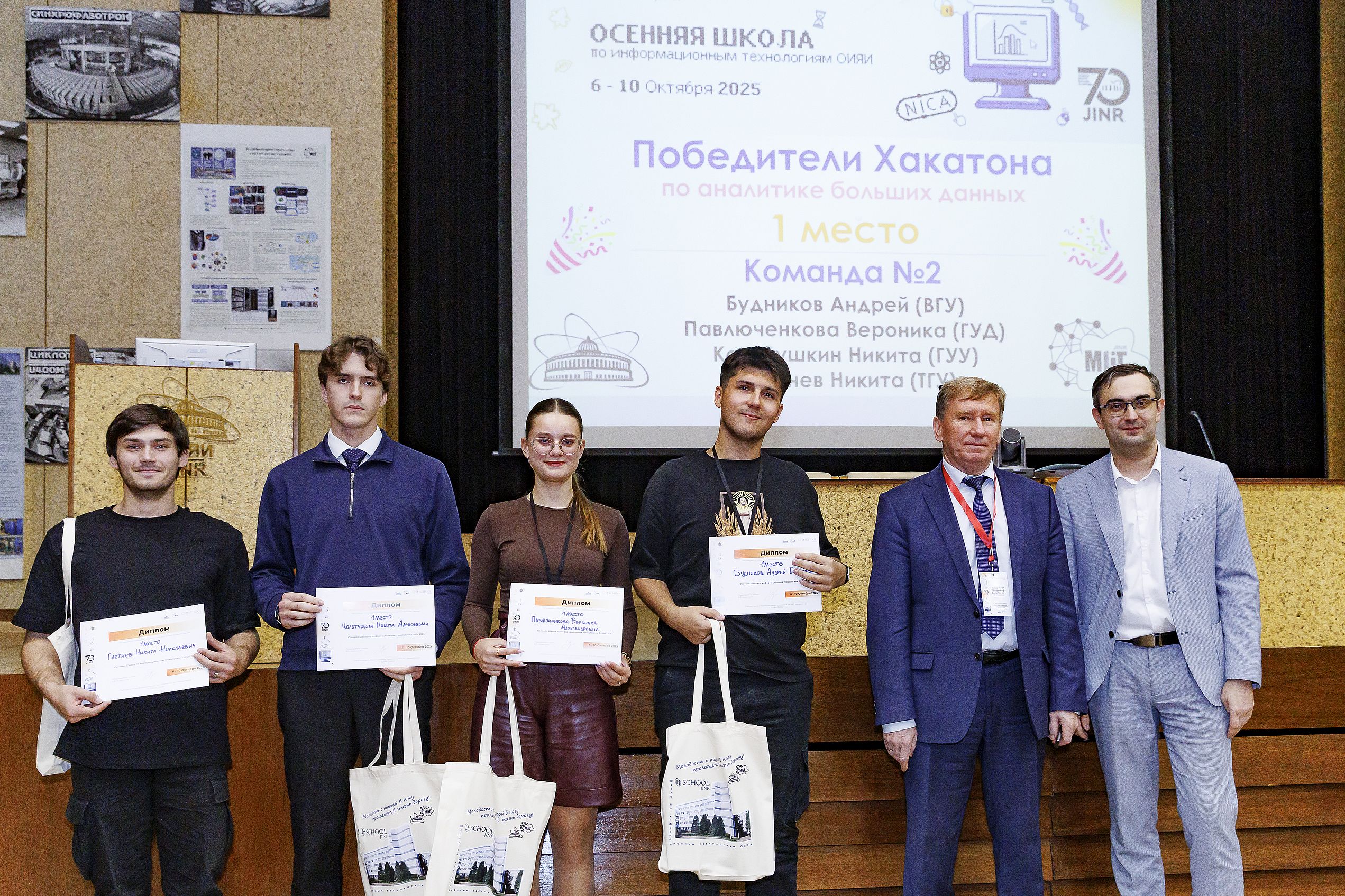 В программу Осенней школы ежегодно входят практические занятия. В этот раз студенты осваивали программные средства обработки, хранения и визуализации данных, а также изучали инструментарий для исследования систем, основанных на джозефсоновских переходах. В течение недели ребята не только слушали лекции, учились программировать и знакомились с научной инфраструктурой ОИЯИ на экскурсиях, но и соревновались на хакатонах. По итогам интеллектуальных сражений победителями хакатона по аналитике больших данных стала команда, в которую вошли Андрей Будников (ВГУ), Вероника Павлюченкова (ГУД), Никита Колотушкин (ГУУ) и Никита Плетнев (ТГУ). На хакатоне по математическому моделированию победу одержали два представителя СПбГУ Мансур Зайнуллин и Илья Бублик.