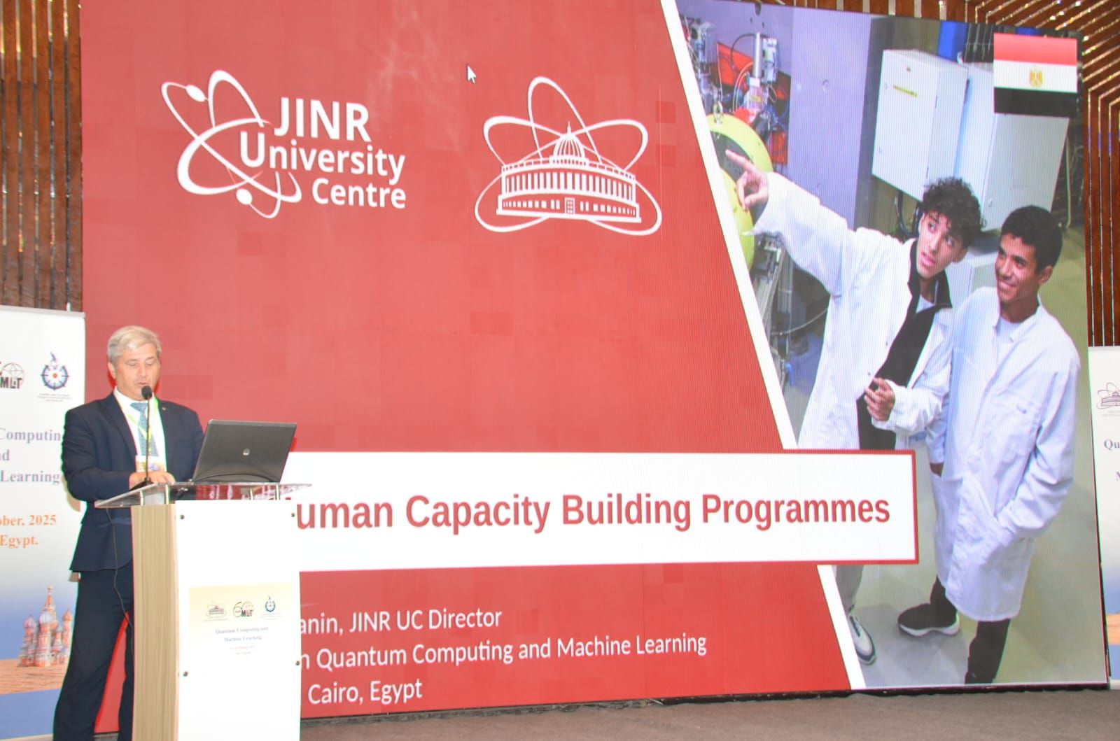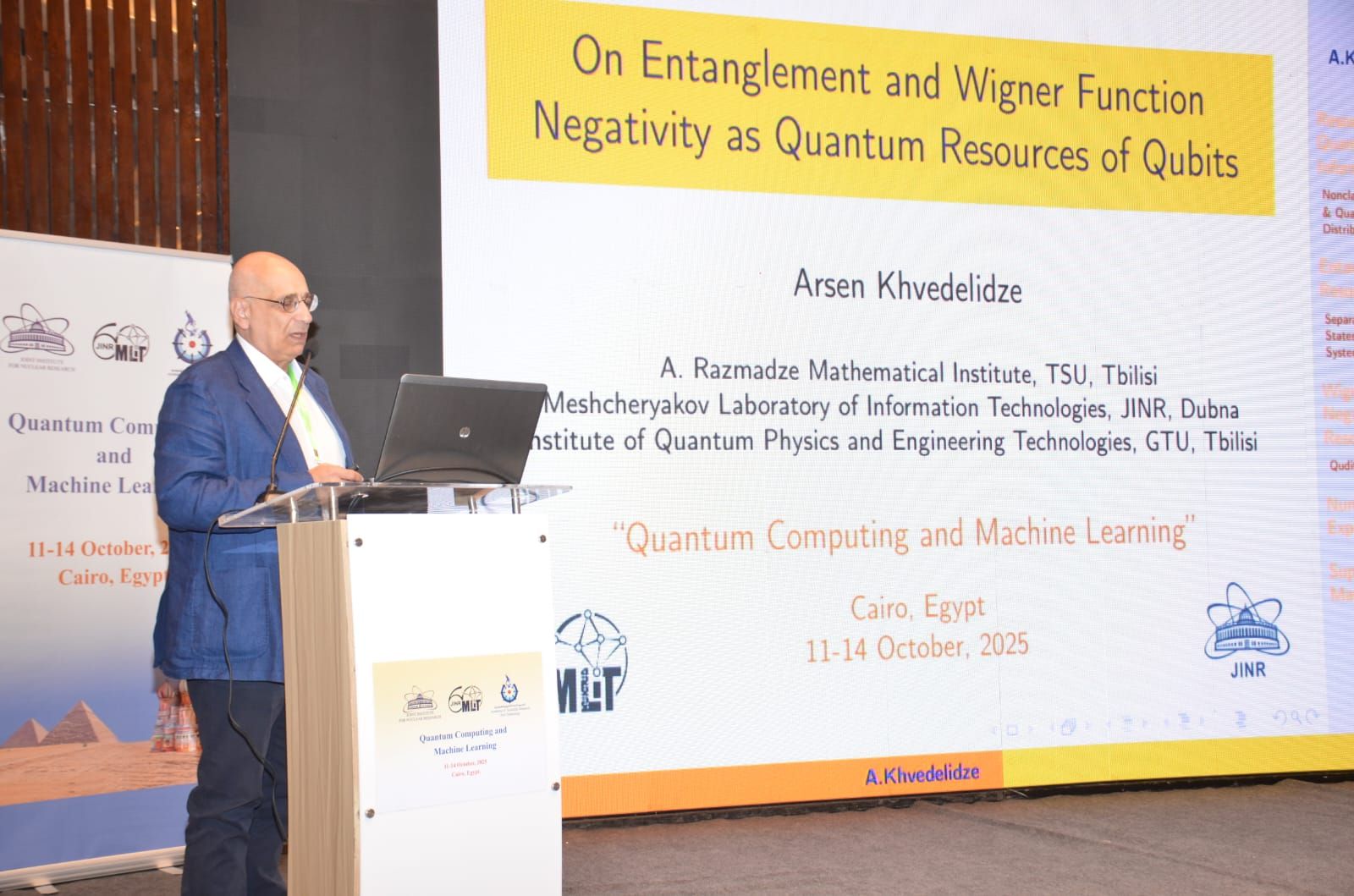JINR and Egypt combine efforts to advance quantum computing On 11–14 October 2025, the Quantum Computing and Machine Learning (QCML) workshop was held in Cairo, Egypt. The event was organized by the Meshcheryakov Laboratory of Information Technologies of the Joint Institute for Nuclear Research (MLIT JINR) and the Egyptian Academy of Scientific Research and Technology (ASRT). The workshop brought together approximately 120 scientists from Armenia, the Czech Republic, Egypt, Georgia, Russia, and South Africa. Scientists from MLIT and the Bogoliubov Laboratory of Theoretical Physics delivered talks on behalf of JINR. The heads of the JINR University Center and the JINR International Cooperation Department also took part in the event. The workshop was opened by Gina El-Feky, ASRT President, Plenipotentiary Representative of the Government of the Arab Republic of Egypt at JINR, and Co-Chair of the QCML Organizing Committee. “The world stands on the threshold of the era of quantum technology. Today’s workshop is more than just a presentation of theoretical research. It will contribute to the foundation of the future of computing technology, communications, and security,” Gina El-Feky said in her speech, emphasizing that quantum computing is part of Egypt’s strategic development program, and JINR is a long-standing and reliable scientific partner for the country. Arsen Khvedelidze, Chairman of the JINR Committee of Plenipotentiaries, Co-Chair of the QCML Organizing Committee, and Head of the JINR MLIT Algebraic and Quantum Computing Sector, welcomed the audience. “I think the idea behind this meeting is perfectly captured by the workshop poster, which displays a bridge connecting Dubna located on the Volga River and Cairo on the banks of the Nile. But there is no sign of heavy traffic on this bridge. I hope that the work and discussions within this event will enhance the scientific traffic on this bridge,” he said. Vladimir Korenkov, MLIT Scientific Leader and Member of the QCML Program Committee, underlined at the opening that quantum computing and machine learning were currently fundamentally crucial areas of development in the field of information technology. At the workshop, Vladimir Korenkov delivered a report on data processing methods and technologies in heterogeneous computing environments. MLIT Director Sergei Shmatov discussed data processing methods and algorithms in high-energy physics experiments. UC Director Dmitry Kamanin gave a talk on JINR’s educational programs and approaches. Scientific reports were presented by Victor Yushankhai from BLTP, Arsen Khvedelidze, Martin Bures, Maxim Zuev, Vahagn Abgaryan, Savelii Omelyanchuk, Nikita Ryabov, and Mikhail Katulin from MLIT. In his commentary on the results of QCML-2025, Arsen Khvedelidze highlighted that the scientific field of quantum computing had enormous potential, but the creation of a fully-fledged quantum computer was still ahead. Nevertheless, scientists worldwide are actively working and making progress in this promising area. Quantum computing entails both a deep understanding of mathematics and strong skills in mathematical programming. The QCML-2025 workshop in Cairo pursued two objectives, namely, to present the results and topics of JINR’s research in the field of quantum computing and machine learning to the Egyptian scientific community and learn about Egyptian colleagues’ achievements in these fields. As a result, a mutual understanding of the structure and diversity of the scientific landscape in this area of information technology was formed. In addition, there were established personal scientific contacts, which may result in joint research projects in the foreseeable future. “This meeting was undoubtedly fruitful. We not only gained an understanding of which Egyptian colleagues are working in which of these areas, but also met those who are conducting research in both quantum computing and machine learning. This intersection is highly interesting,” Arsen Khvedelidze said. He also pointed out the very broad range of tasks related to quantum learning and machine learning being explored by Egyptian scientists. Unlike JINR’s research in this field, which is of a fundamental, mathematical nature, Egypt is more focused on applied studies. “These differences are beneficial to both JINR and the Egyptian scientific community. We can harmoniously and effectively complement each other’s scientific work. For example, I had questions about a talk by Professor Ahmed El-Mahdy, a computer scientist at Nile University, and we eventually came up with the idea for a project. This provides an opportunity to initiate collaboration on a specific task and build further cooperation around it,” Arsen Khvedelidze emphasized. Given the growing global interest in quantum computing, a series of similar workshops in the Institute’s Member States will allow for a common map of research, topics, work, and results achieved. Arsen Khvedelidze expressed hope that this conference would serve as a starting point, a first step toward combining the efforts of the JINR Member States in this innovative sphere. The QCML workshop also became a site for expert meetings and discussions. UC Director Dmitry Kamanin and Deputy Head of the International Cooperation Department Elena Badawi, together with the Egyptian delegation, organized meetings with ASRT President at the Egyptian Academy of Scientific Research and Technology, as well as a roundtable discussion with the management and specialists of several Egyptian scientific organizations. See also: Prospects of holding JINR student internships for Africa discussed in Cairo Round table with representatives of Egyptian scientific organizations