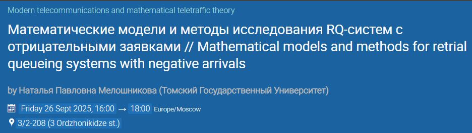 26 сентября 2025 года в 16:00 состоится научный межвузовский семинар «Современные телекоммуникации и математическая теория телетрафика (СТиМТТ)».
