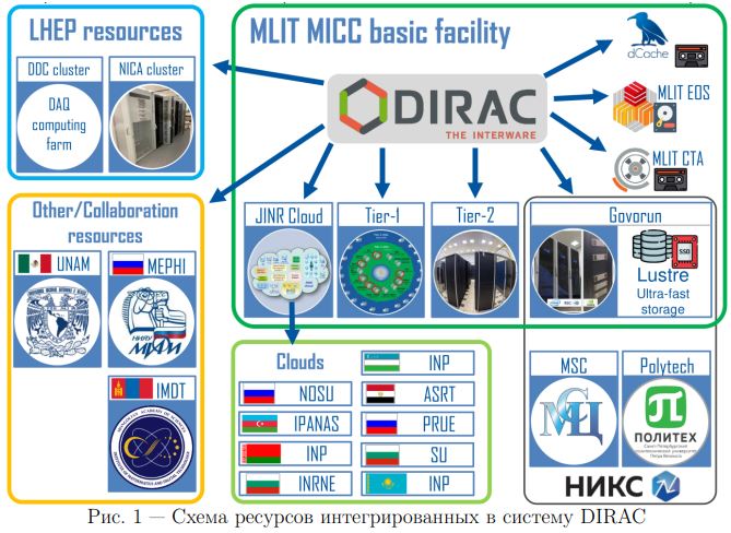 В ЛИТ состоялась защита кандидатской диссертации по тематике распределенных вычислений 12 сентября в Лаборатории информационных технологий состоялась успешная защита диссертационной работы научного сотрудника ЛИТ Игоря Пелеванюка на соискание ученой степени кандидата технических наук. Темой работы стали методы и программные средства создания распределённых гетерогенных вычислительных сред на базе платформы DIRAC. Описанные в диссертации методы были разработаны, реализованы и успешно применены на примере обработки данных экспериментов на ускорительном комплексе NICA и ряда других экспериментов. Научным руководителем работы выступил научный руководитель ЛИТ ОИЯИ доктор технических наук Владимир Кореньков. Официальные оппоненты: доктор технических наук, заведующий кафедрой вычислительных технологий Национального исследовательского университета «МЭИ» Виктор Топорков и кандидат физико-математических наук, заведующий лабораторией аналитических вычислений в физике высоких энергий НИИЯФ МГУ Александр Крюков. «Диссертационная работа Игоря Пелеванюка имеет большое научное, технологичное и практическое значение. Он активно участвует в развитии уникального Многофункционального информационно-вычислительного комплекса ОИЯИ, выполнил интеграцию оборудования различной архитектуры (грид, облака, кластеры, суперкомпьютер, системы хранения информации), которая эффективно используется для ряда крупных научных проектов», — отметил научный руководитель работы Владимир Кореньков. На сегодняшний день организация географически распределённых гетерогенных вычислительных сред является необходимым инструментом для решения задач крупных физических проектов. При непрерывном росте объёмов данных, генерируемых современными научными экспериментами и проектами, их требования зачастую превышают возможности любого из доступных для них вычислительных ресурсов. Здесь решением зачастую служит совместное использование сразу нескольких вычислительных кластеров, систем хранения, суперкомпьютеров и облачных инфраструктур. В таком случае возникает необходимость организации единой вычислительной среды, способной интегрировать доступные ресурсы и использовать их для хранения и обработки данных. Такое объединение ресурсов всё ещё остаётся сложной задачей, требующей комплексного подхода. В диссертационной работе Игорь Пелеванюк поставил целью развитие методов и программных средств для организации распределённых гетерогенных вычислительных сред обработки данных на базе платформы DIRAC, которая в свое время была создана для решения задач эксперимента LHCb на Большом адронном коллайдере в СERN. С 2017 года по настоящее время Игорь Пелеванюк успешно развивает такую вычислительную среду на базе DIRAC в ОИЯИ. Она включает суперкомпьютер «Говорун», кластеры Tier1 и Tier2, кластеры «NICA» и «BM@N DAQ Computing Center», облачные инфраструктуры ОИЯИ и стран-участниц ОИЯИ, вычислительные ресурсы некоторых членов коллабораций экспериментов на ускорительном комплексе NICA. В качестве систем хранения были интегрированы дисковое хранилище EOS, ленточное хранилище Enstore и ленточное хранилище CTA. Изначально, в инструментарий платформы DIRAC не входили инструменты мониторинга задач и передачи данных, инструменты анализа выполнения больших пакетов задач, а также