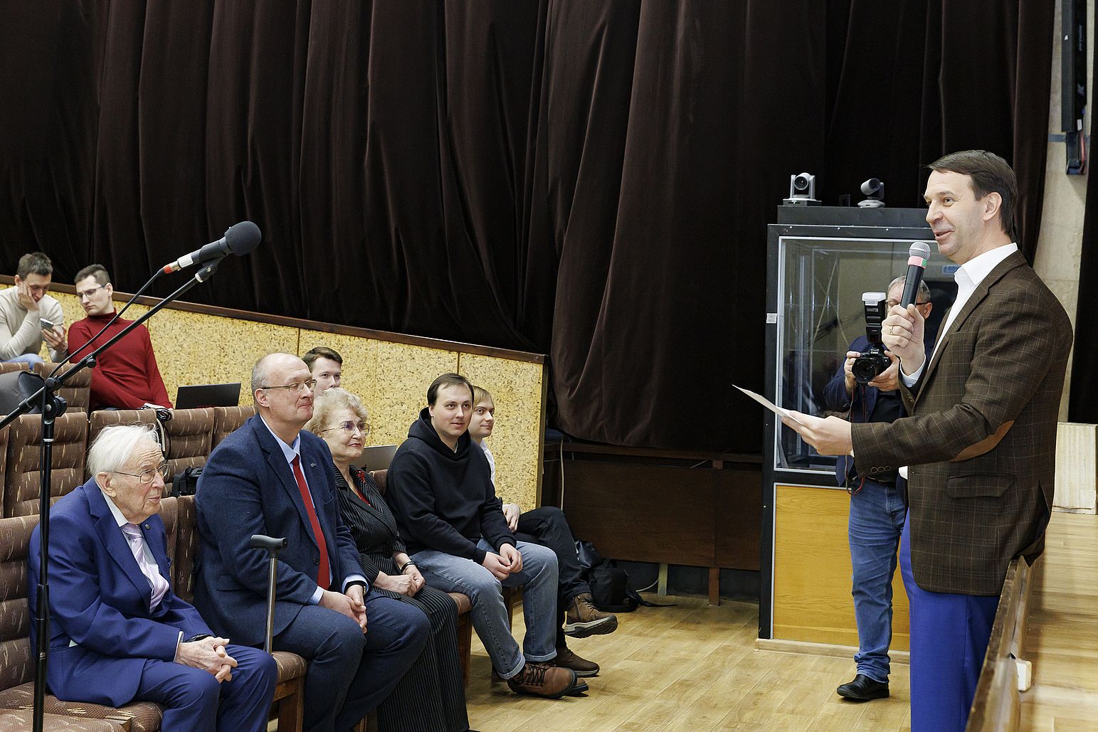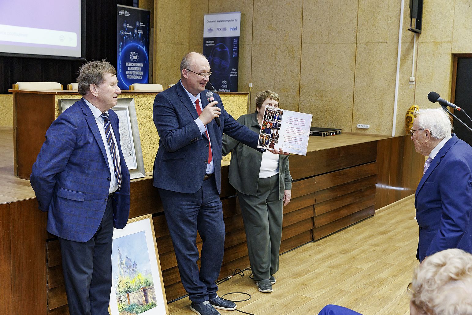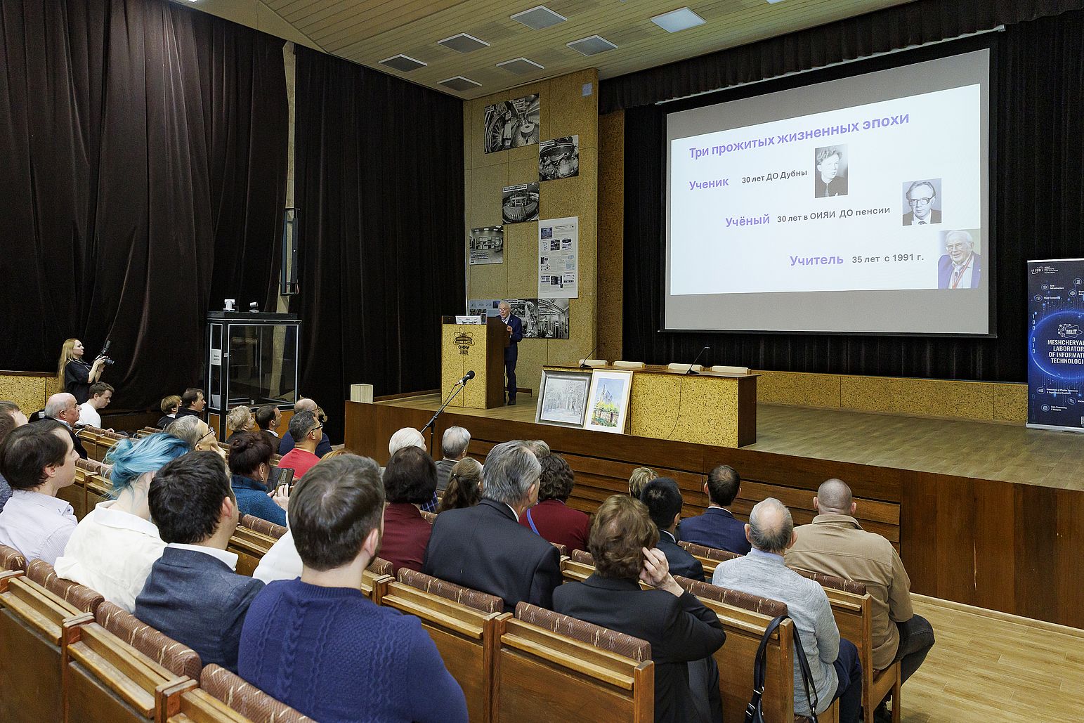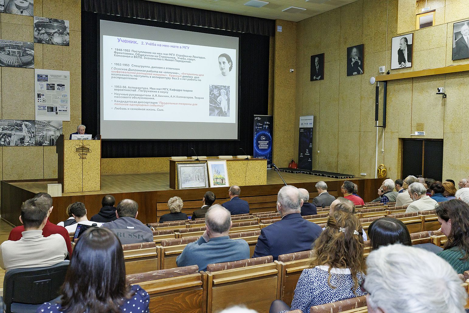 «Талант дал Бог»: Геннадий Алексеевич Ососков отметил 95-летие 13 февраля 2026 года Лаборатория информационных технологий им. М. Г. Мещерякова ОИЯИ отметила 95-летие Геннадия Алексеевича Ососкова, ветерана ЛИТ, профессора, доктора физико-математических наук, главного научного сотрудника Научного отдела вычислительной физики. На праздничном семинаре, посвященном этому знаменательному событию, собрались друзья, ученики, коллеги, все, кто когда-либо попадал под обаяние этого удивительного человека. Директор ОИЯИ Григорий Трубников первым поздравил юбиляра. В своем теплом и неформальном поздравлении Григорий Трубников выделил поразительные энергичность, любознательность и интерес к жизни Геннадия Алексеевича. Он выразил большую благодарности от всех учеников Г. А. Ососкова, подчеркнув, что и сам является одним из них. Директор ЛИТ Сергей Шматов отметил серьезный вклад Геннадия Алексеевича как в российскую, так и в мировую науку, а также его влияние на развитие и Лаборатории, и всего Института. Заместитель научного руководителя ЛИТ Татьяна Стриж дополнила поздравление теплыми словами и пожеланием обогатить список блестящих достижений юбиляра ещё и квантовым компьютингом. Научный руководитель ЛИТ Владимир Кореньков рассказал, с каким огромным энтузиазмом и творческой энергией Геннадий Алексеевич берется за каждую задачу, как «зажигает» молодых коллег своими идеями. Научную часть праздничного семинара открыл сам юбиляр. В докладе «65 лет служения ОИЯИ. Ретроспективы и перспективы» он рассказал про свой путь жизненный и научный, разделив его на три эпохи: ученик, учёный и учитель. Геннадий Алексеевич родом из Вятки (г. Киров), провел детство в предвоенном Сталинграде, а трудные военные годы пережил в Мордовии. После войны учился в школе №9 города Коломна, где, как подчеркнул докладчик, ему очень повезло с учителями. Зинаида Григорьевна, учительница русского языка, научила его грамотно писать, логично мыслить, выступать перед людьми. Преподаватель математики Георгий Михайлович привил любовь к математике. Все навыки, полученные в тот период, очень пригодились Геннадию Алексеевичу в жизни. Позже он поступил и окончил с отличием Механико-математический факультет МГУ им. М. В. Ломоносова. Красный диплом получил из рук академика И. Г. Петровского. В аспирантуре МГУ Геннадию Алексеевичу судьба вновь подарила прекрасных наставников — двух выдающихся математиков Александра Яковлевича Хинчина/ и Андрея Николаевича Холмогорова. Они научили молодого Ососкова ощущать радость от научных открытий, от решения сложных задач. Благодаря поддержке преподавателей в 26 лет Геннадий Алексеевич защитил кандидатскую диссертацию. В 1961 году, по приглашению университетских коллег Е. П. Жидкова и Н. Н. Говоруна Г. А. Ососков переехал в Дубну и с тех пор работает в ОИЯИ. Такие знаковые учёные как Николай Николаевич Говорун, Николай Николаевич Боголюбов, Михаил Григорьевич Мещеряков оказали огромное влияние на научное становление Геннадия Алексеевича. В 1987 году Геннадий Алексеевич успешно защитил докторскую диссертацию. Она была посвящена разработкам в области математического обеспечения для автоматизированных измерительных систем, предназначенных для обработки экспериментальных данных, и обобщала результаты его исследований за период с 1961 по 198